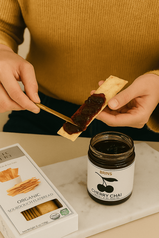Premium Gourmet Gift Box – Crackers, Cherry Chai Jam, Cheese spread & Gold tone Spoon | Custom Message Included